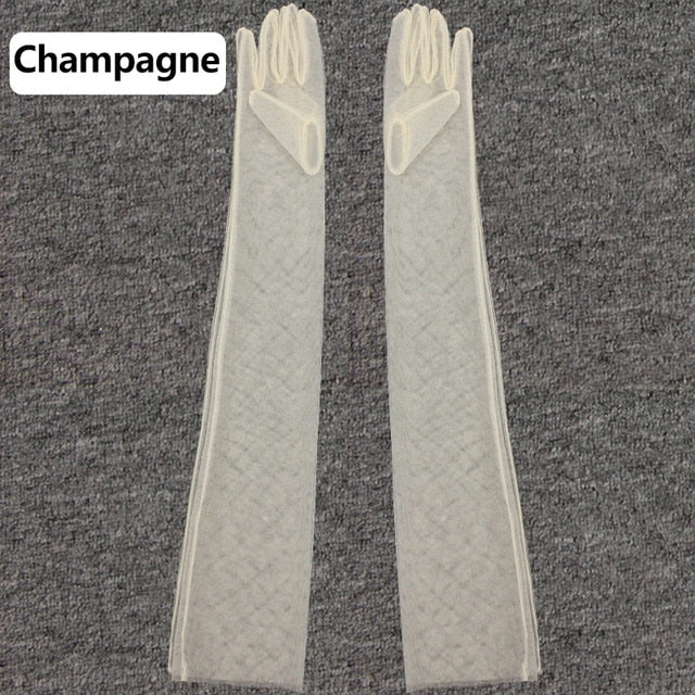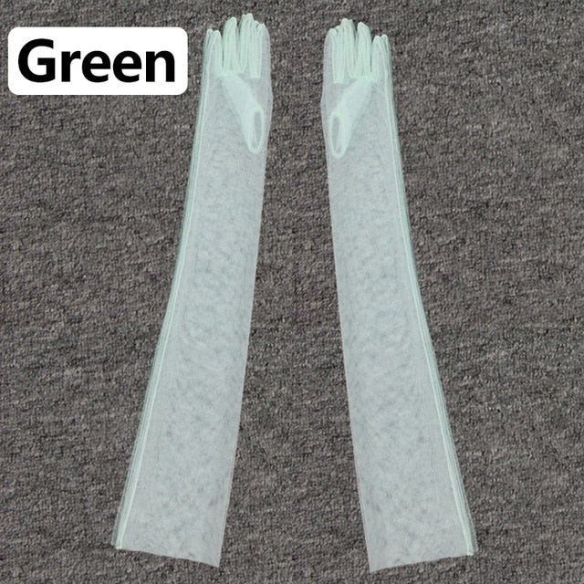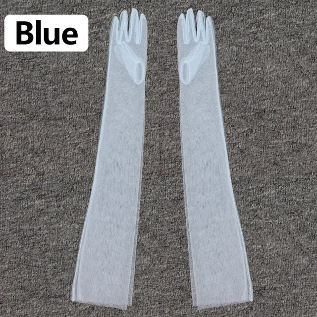 2020 Women Sheer Tulle Gloves Transparent Full Finger Elbow Long Gloves Mittens wedding Party Photography Thin Ultra Long Gloves